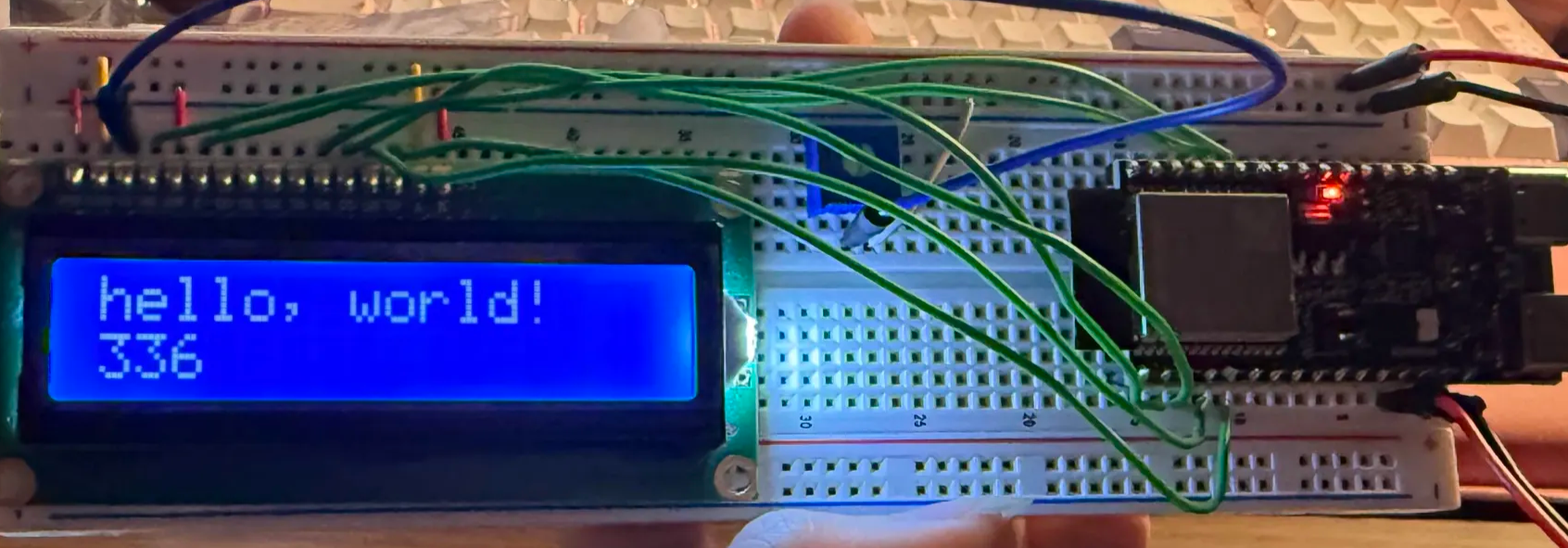 Breadboard of the LCD, tested with the ESP32