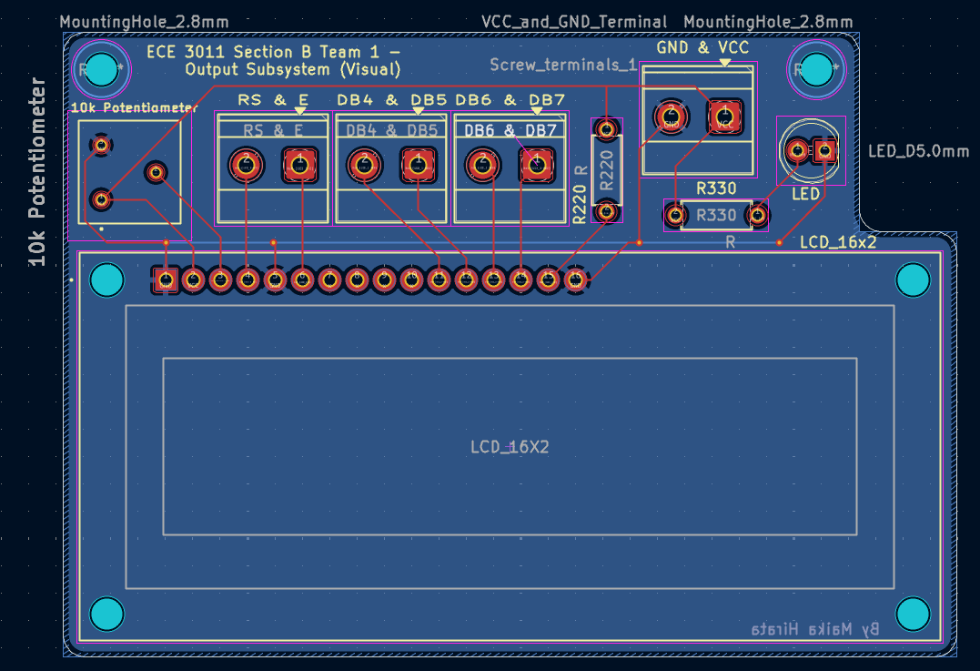 The LCD PCB was connected after the sensing and motion subsystems were deemed to